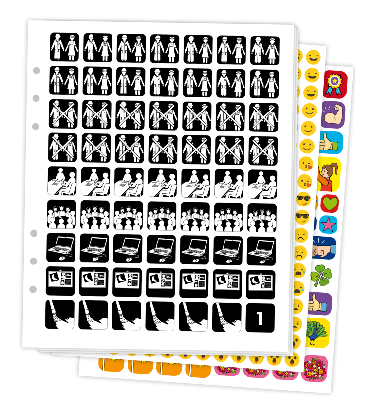 Daarnaast is er de mogelijkheid om zelf pictogrammen – of eigen foto’s – via www.pictoselector.eu op blanco stickervellen te printen. Deze gratis tool bevat duizenden pictogrammen, waaronder die van Pictogenda. Zo kunnen de agenda en kalender volledig op de persoon, groep of het gezin afgestemd worden.